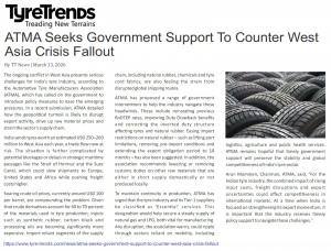 atmaindia2026-03-14 08:35:442026-03-14 10:01:50West Asia crisis may hit Indian tyre industry: ATMA seeks policy support