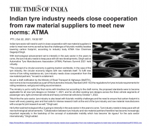 atmaindia2021-11-09 03:11:332021-11-09 03:11:34Indian tyre industry needs close cooperation from raw material suppliers to meet new norms: ATMA