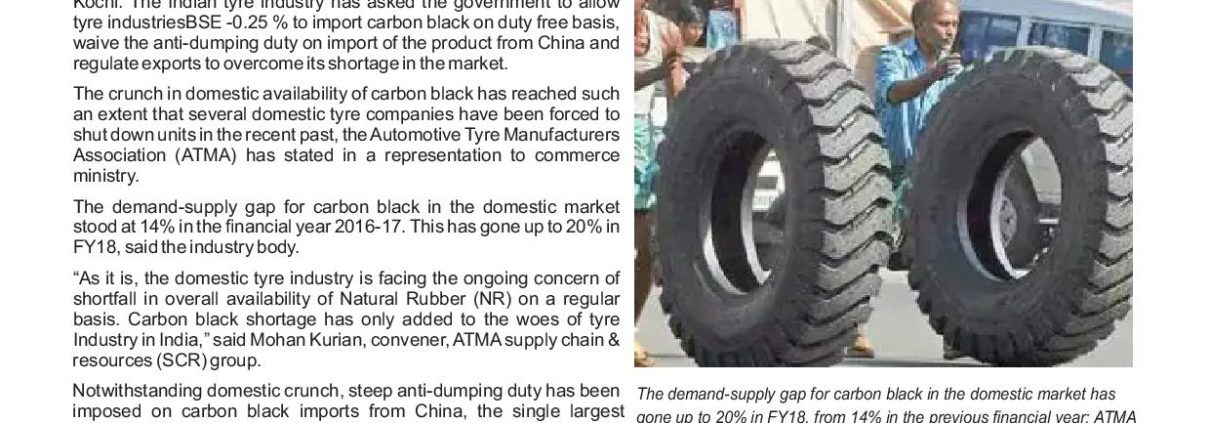 atmaindia2018-02-19 10:18:082018-07-24 09:31:47Tyre industry asks govt to allow duty-free import of carboon black