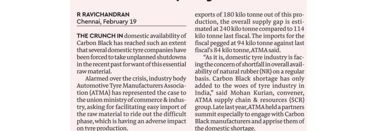 atmaindia2018-02-20 10:18:052018-07-24 08:19:32Shortage of carbon black hits tyre plants: ATMA