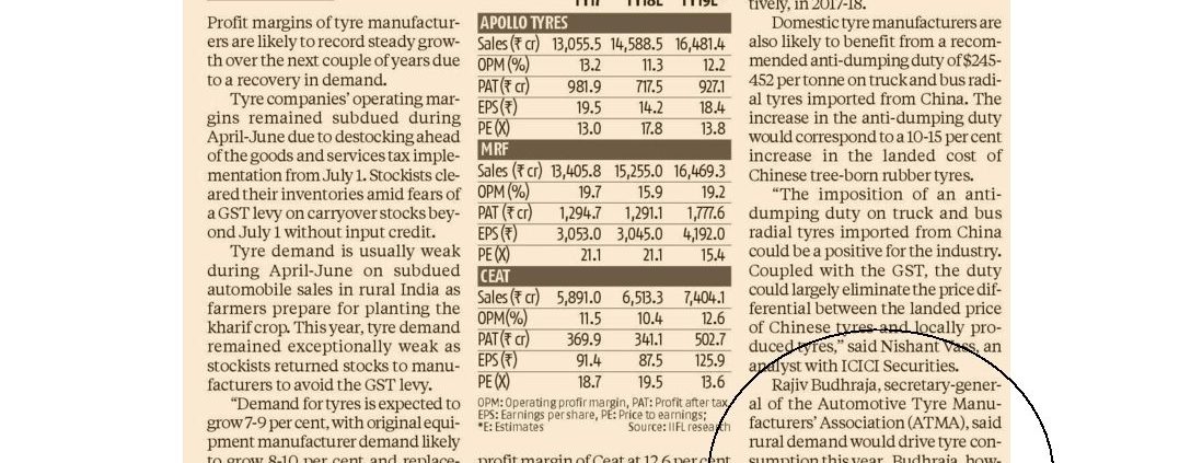 atmaindia2017-09-13 05:47:472019-01-07 07:55:24Tyre companies’ margins to recover as demand revives