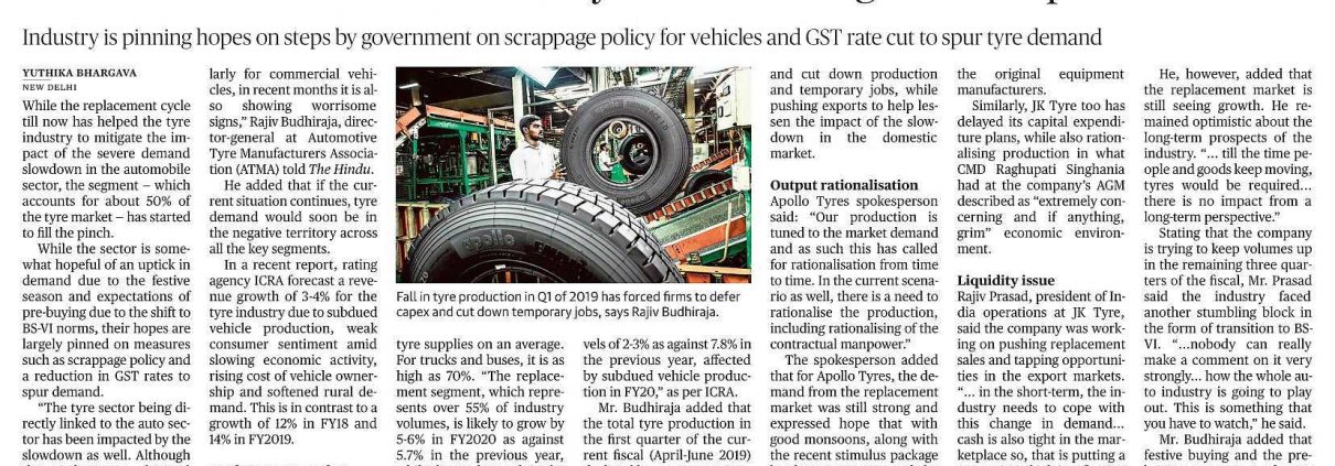 atmaindia2019-11-30 12:03:402021-02-02 08:01:37With Auto Sector in slow lane,tyre makers begin to feel pinch