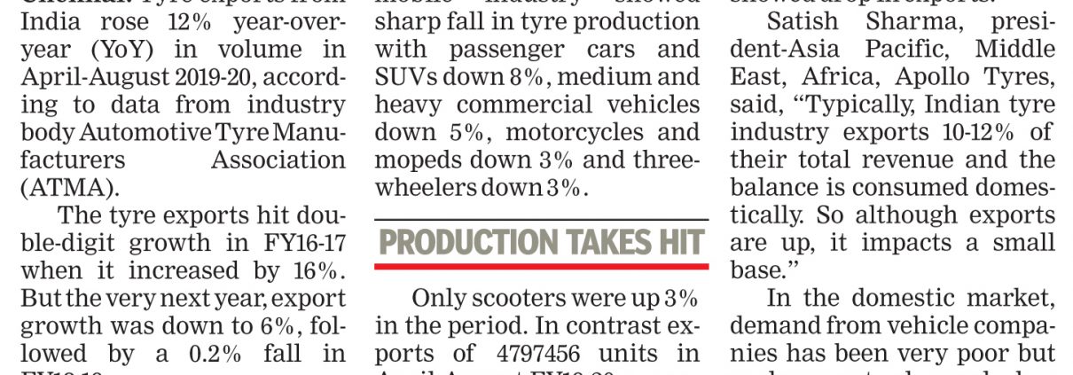 atmaindia2019-11-30 12:39:382021-02-02 07:50:49ATMA: Tyre exports in April-Aug rise 12% second highest in 6 years