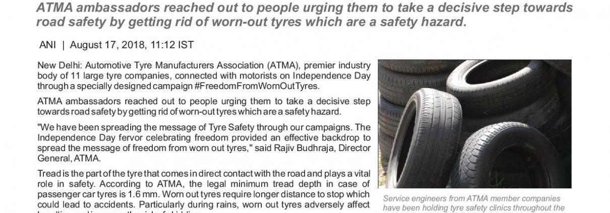 atmaindia2018-08-17 05:51:582019-01-07 06:47:56ATMA celebrates Independence Day with Freedom from Worn-out Tyres campaign