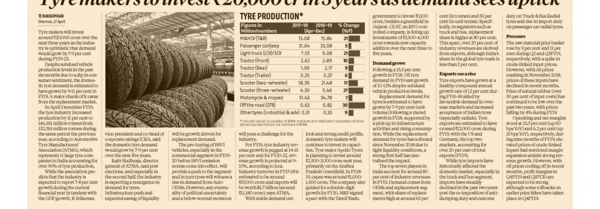 atmaindia2019-04-28 11:44:092021-02-02 08:43:31Tyre makers to invest Rs. 20000 Cr